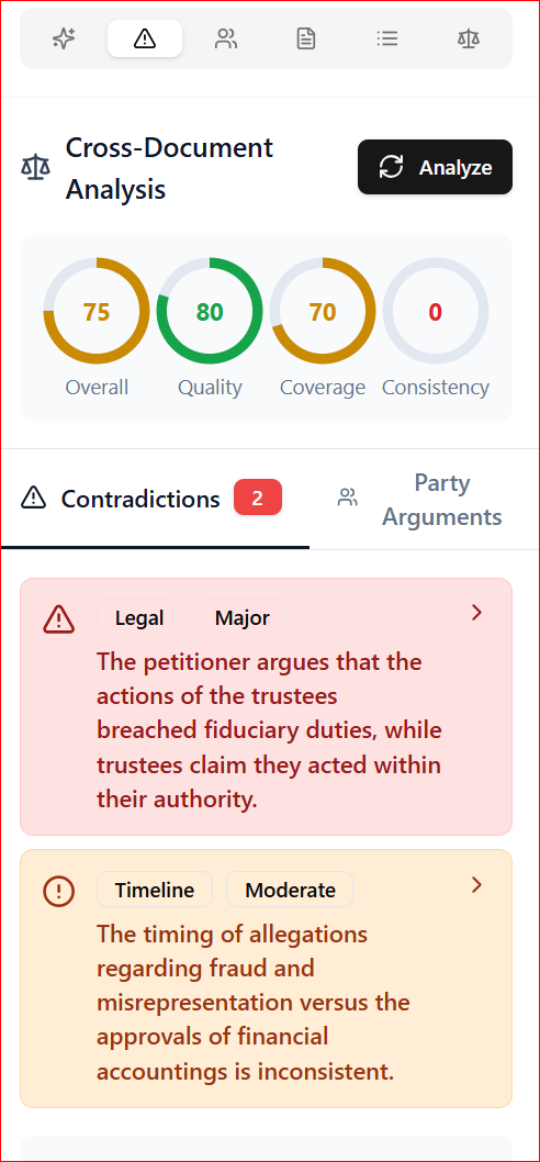 ✔ Detect contradictions between parties & rulings